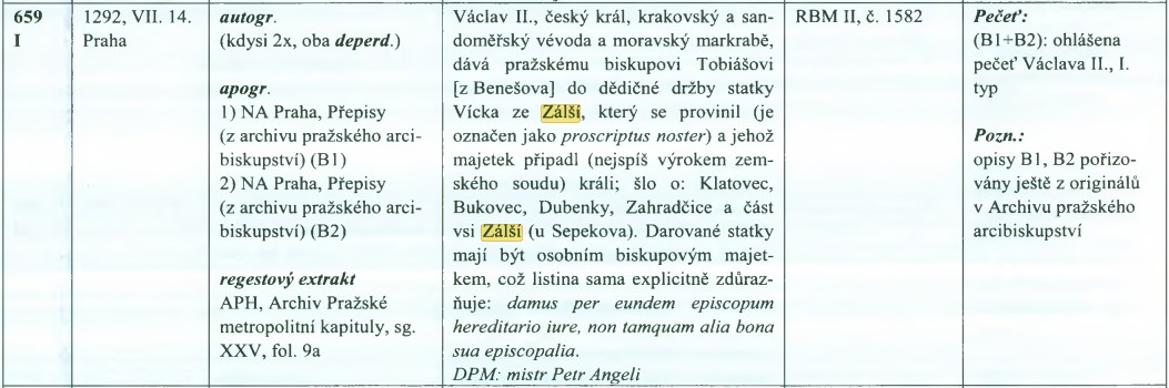 Katalog listin a listů k VII. dílu Českého diplomatáře, s. 259.1
