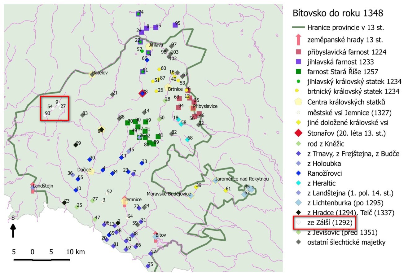 Majetkové poměry na jihozápadní Moravě popisuje neskutečně rozsáhlá disertační práce Stanislava Vohryzka (dále jen Vohryzek): Šlechta na jihozápadní Moravě do husitských válek, 2017, on-line: https://is.muni.cz/th/w0uzp/ ↩︎