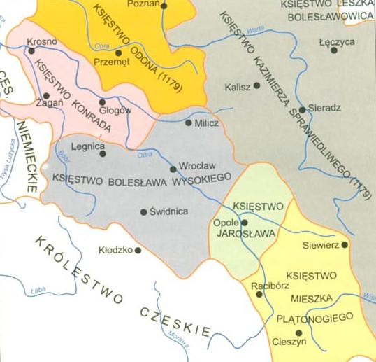 Rozdělení Slezska v roce 1177, zdroj: Zamki.name